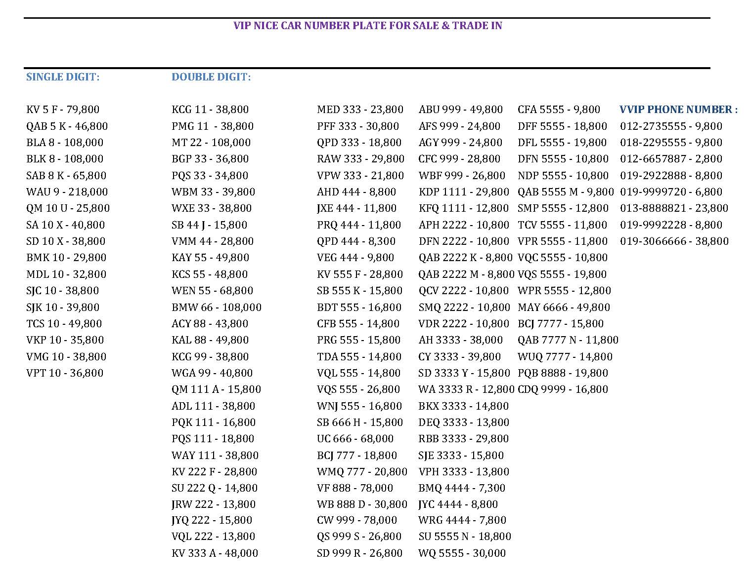 - Selling of VIP and Special Plate Number. Do you want to sell your existing plate number? We can help.